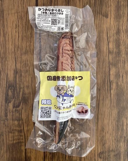 1本 かつお(約170g) 290kcal 粗たんぱく質 34.6%以上 粗脂肪 1.3%以上 粗繊維0.1%以下 粗灰分 1.4%以下 水分 61.2%以下
